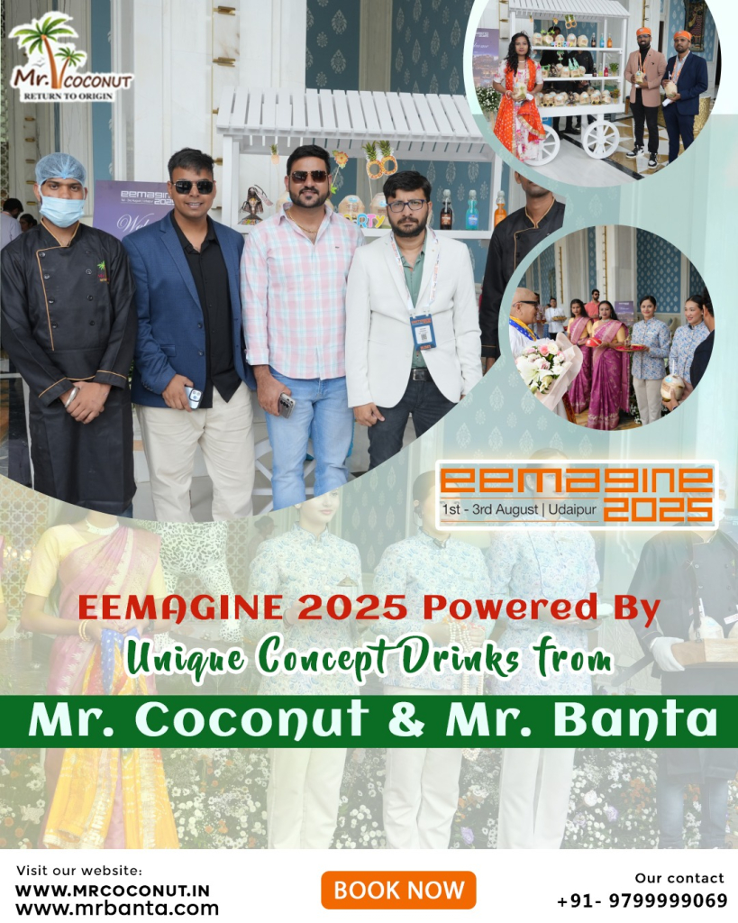 Get ready to experience India’s most dynamic event industry gathering—EEMAGINE 2025—where innovation meets tropical flair in the royal city of Udaipur. In a move that’s turning heads across the event landscape, Mr. Coconut steps in as the official F&B partner for EEMAGINE 2025, bringing its iconic personalized coconuts and immersive Cocobar stall straight to the heart of the show. As experts and creatives converge under the grandeur of the Fairmont Udaipur Palace, Mr. Coconut’s collaboration promises not only refreshment but also a burst of originality that sets the stage for unforgettable guest experiences.