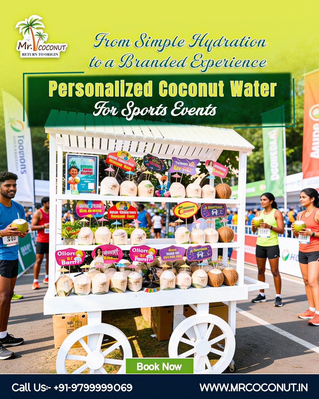 Recognised as the Best Customized Coconut Brand in India, Mr. Coconut combines natural hydration with precision planning, making it ideal for marathons, sports meets, and large fitness events.