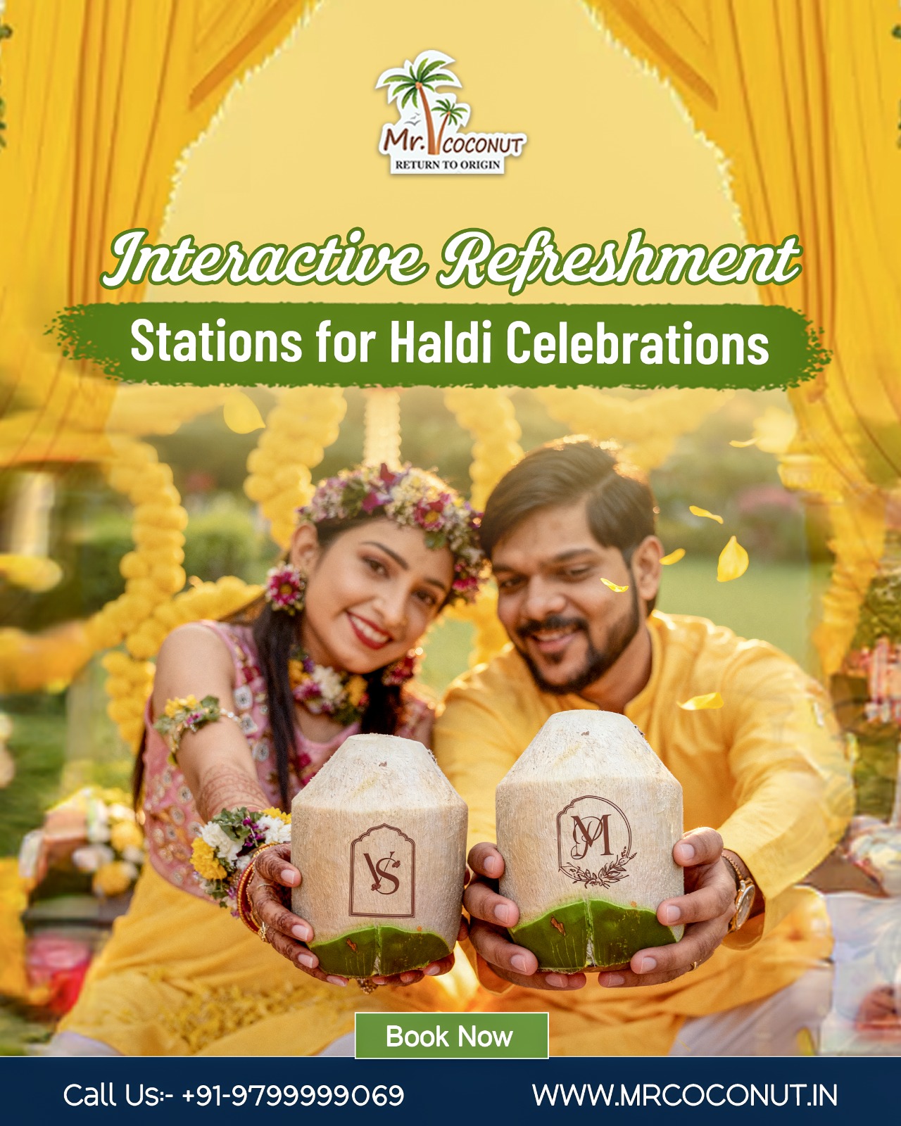 Mr. Coconut has you covered if you require a professional, welcoming space to host your networking events in India. Introduce the best experience to all your guests at the event with Mr. Coconut's uniquely designed personalized coconuts. We help by offering a unique coconut beverage stall in Kolkata with branded and carved coconuts and several other coconut ideas.